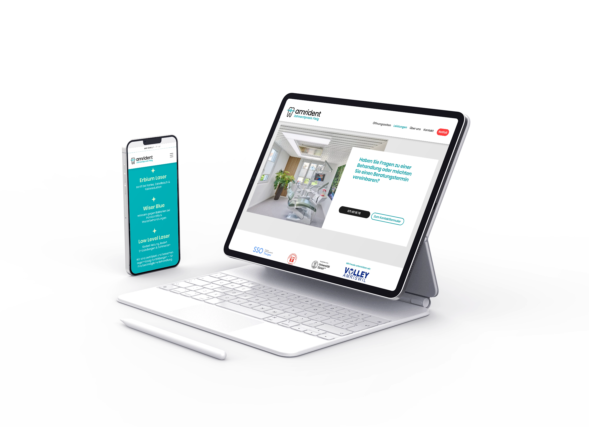 Für das zahnmedizinische Zentrum Amrident durfte ich als Creative Director ein umfassendes Rebranding begleiten – von der Konzeption bis zur Umsetzung. Der Auftritt wurde visuell geschärft und modernisiert, ohne die bestehende Markenidentität zu verlieren. Die klare Formsprache und reduzierten Gestaltungselemente sorgen für einen professionellen, vertrauensvollen Eindruck – online wie offline. Ziel war es, die Marke gestalterisch zu präzisieren und für die interne wie externe Kommunikation konsistent weiterzuentwickeln. Entstanden ist ein frisches, ruhiges Erscheinungsbild, das Kompetenz und Nahbarkeit verbindet.
